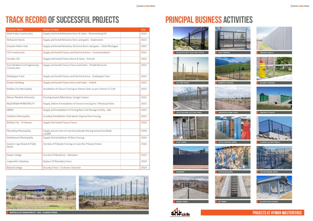 Leaders in the fencing industry. We manufacture, supply and deliver all types of fencing. We pride ourselves with more than 23 years experience in the industry, adapting with current trends and future changes. HMF has an embedded national footprint all over South Africa with in the public and private sectors. We are a proud 100% Black Woman Owned Company. Our CEO, Nwabisa Unathi Njezula, for the past 8 years has been the backbone of this company and supported by a great team. We are accredited Betafence and ClearVu “Clearview” installers and suppliers.